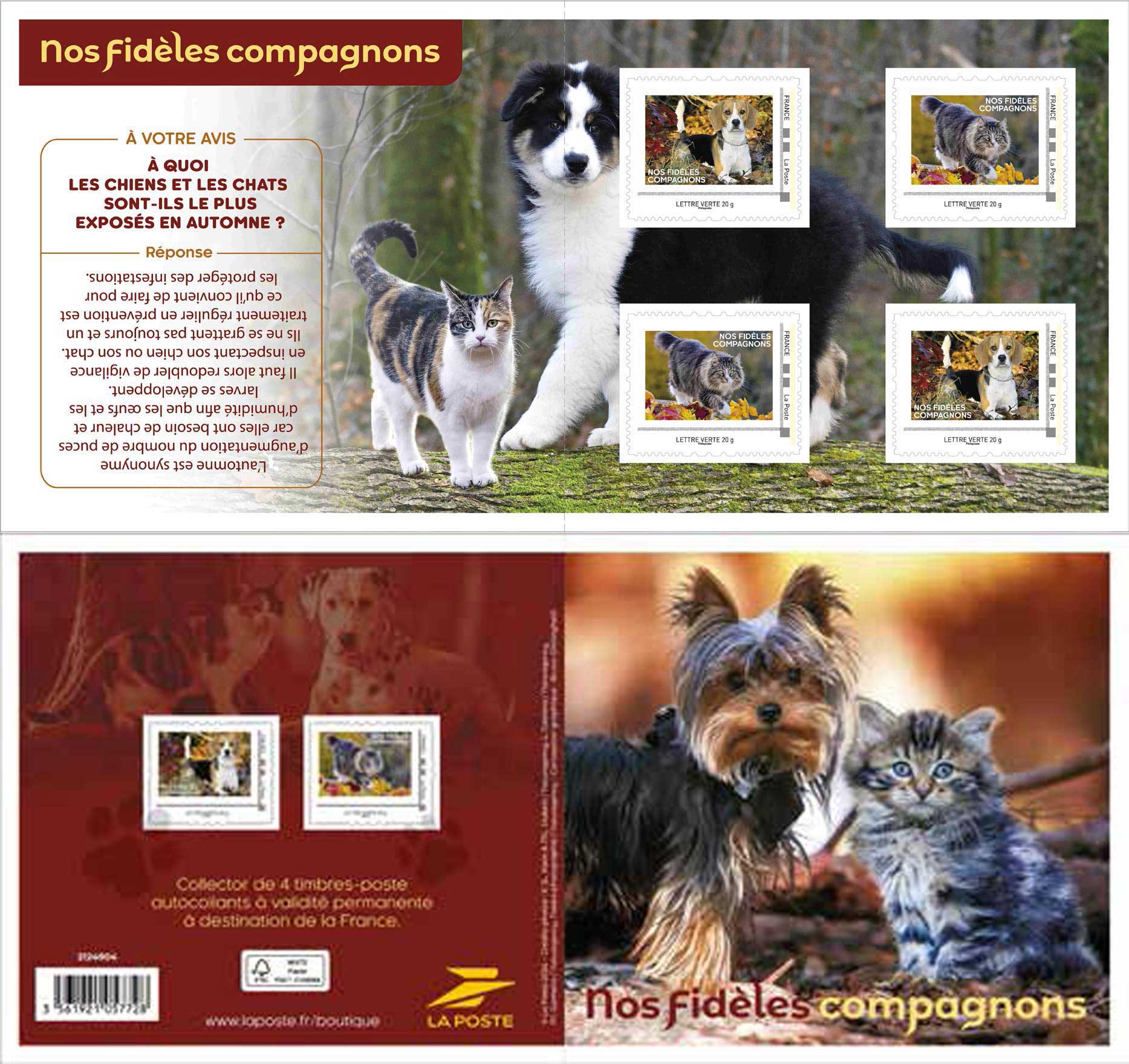 | Description | Émission d'un collector de 4 timbres sur nos fidèles compagnons, les chiens et les chats en automne. |