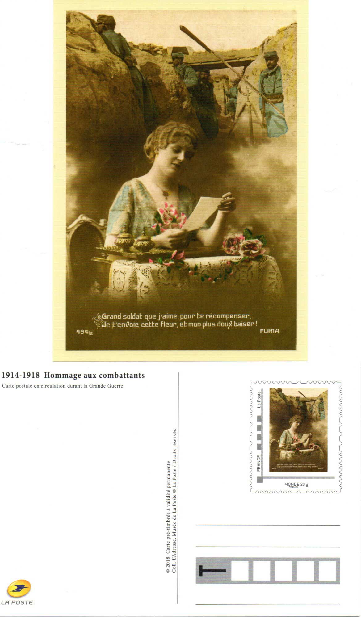 | Description | Carte pré-timbrée - série de 4 cartes "1914-1918 Hommage aux combattants" |