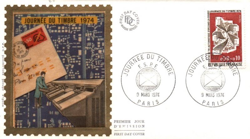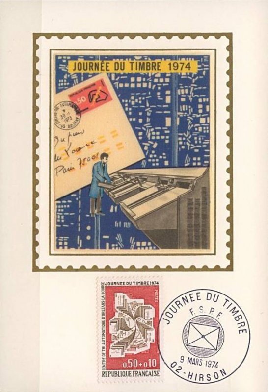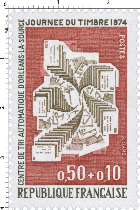 | Description | Journée du timbre 1974. Centre de tri automatique d'Orléans la Source |