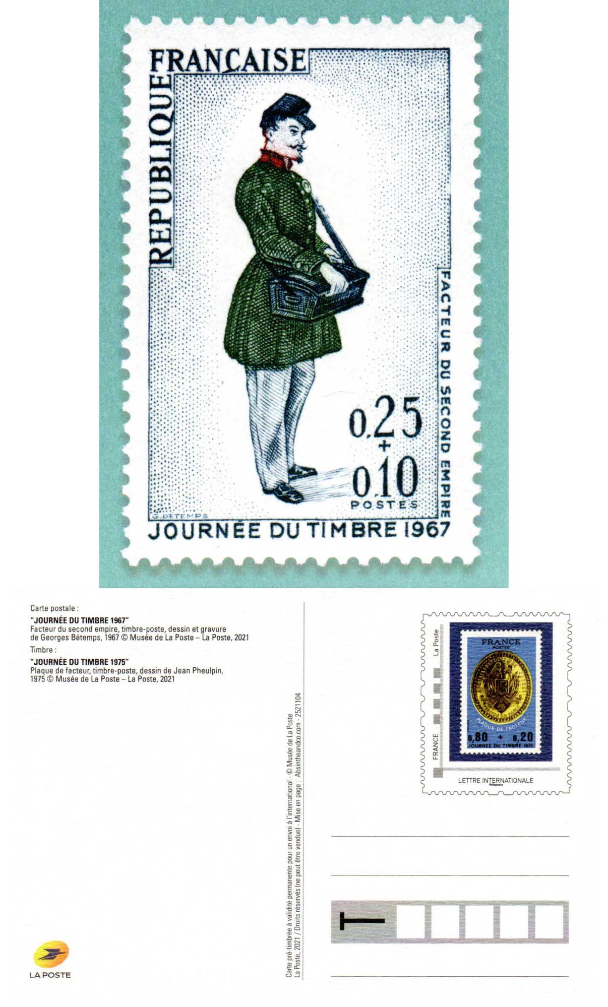 | Description | Carte pré-timbrée - série de 4 cartes "Journée du Timbre" de 1967, 1968, 1969 et 1970. |