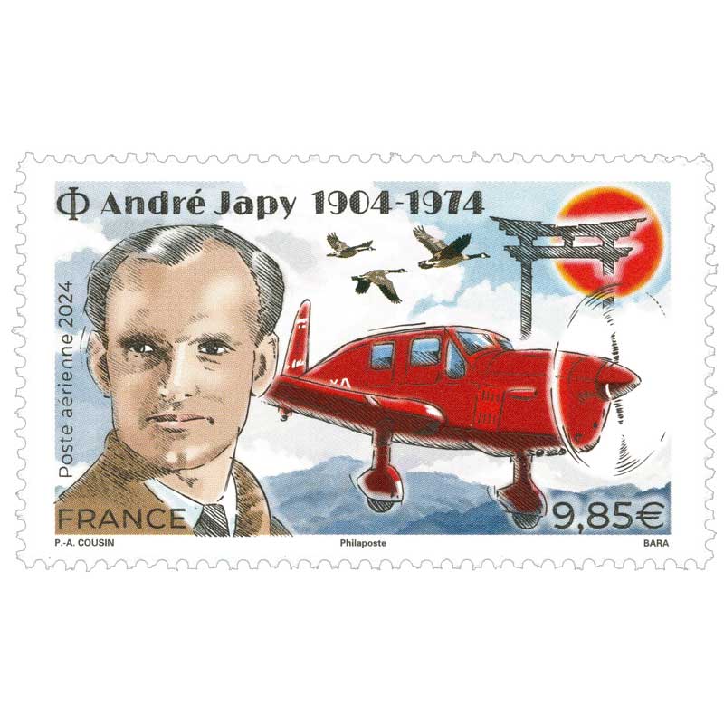| Description | Émission d'un timbre et une mini-feuille de la série Poste aérienne à l’effigie d’André Japy à l’occasion du 120e anniversaire de sa naissance et du 50e anniversaire de sa disparition. Aviateur des grands raids et des exploits. |