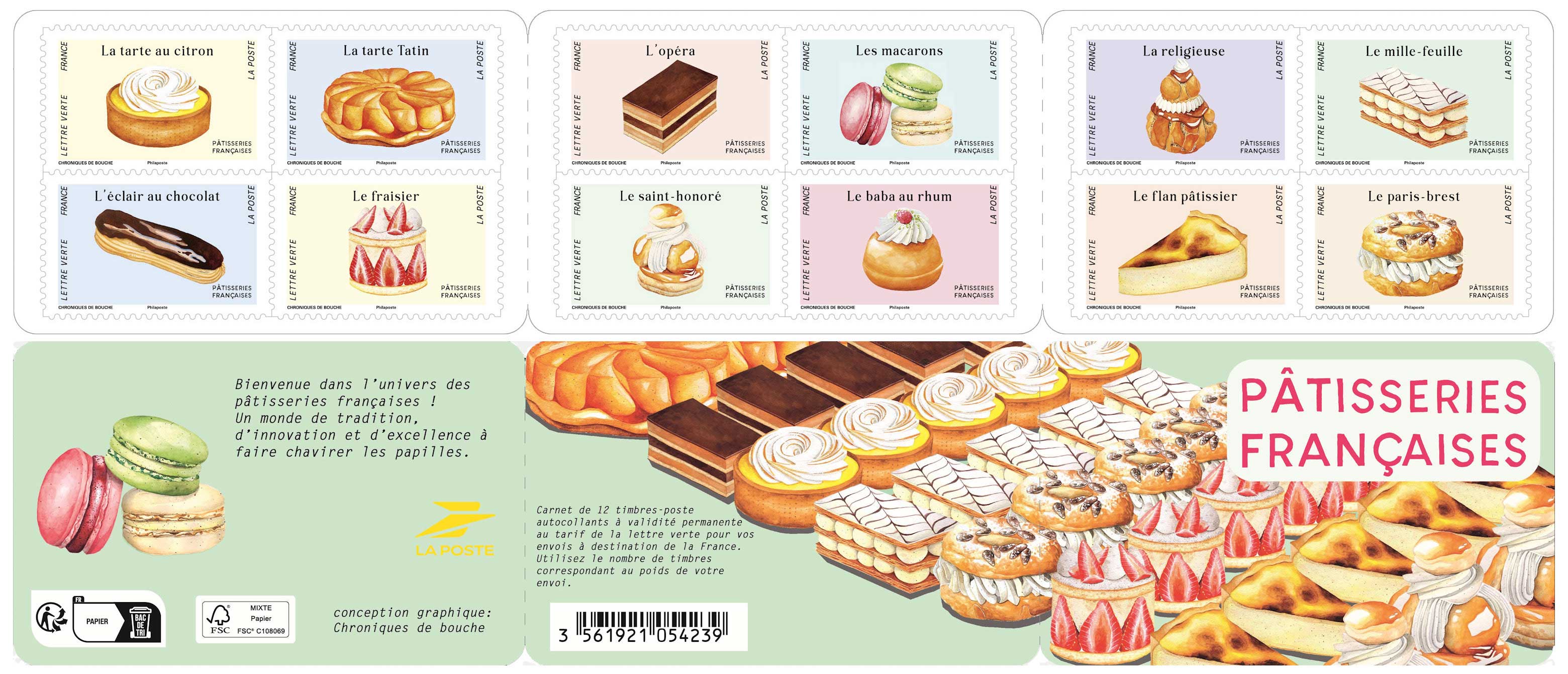 | Description | Émission d'un carnet de 12 timbres-poste illustré par des pâtisseries françaises emblématiques. Un carnet gourmand à savourer ! |