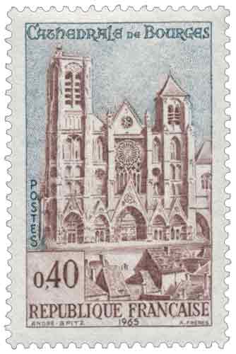 | Commentaire | Ce timbre est émis à l'occasion du congrés national de la Fédération nationanle des sociétés philatéliques française réuni à Bourges Émis en 1965 à l’occasion du 38ᵉ congrès de la Fédération des sociétés philatéliques françaises tenu à Bourges, ce timbre met à l’honneur la Cathédrale Saint-Étienne de Bourges, monument majeur de l’art gothique français dont la construction, engagée à la fin du XIIᵉ siècle sous l’archevêque Henri de Sully et achevée au début du XIVᵉ siècle, se distingue par une remarquable unité de conception malgré la durée du chantier ; l’édifice se singularise par l’absence de transept et par un plan à cinq vaisseaux hiérarchisés correspondant aux cinq portails de la façade occidentale, choix audacieux qui renforce l’élan vertical et la lisibilité intérieure, tandis que la façade elle-même, encadrée par deux tours d’inégale hauteur, développe un programme sculpté dense et didactique autour de la vie du Christ et des grands saints liés à l’histoire locale ; à l’intérieur, la nef culminant à près de 37 mètres, la clarté exceptionnelle due à la dénivellation des bas-côtés et l’ensemble des vitraux médiévaux, parmi les plus vastes conservés en France, confèrent à l’édifice une ampleur lumineuse qui en fait un jalon essentiel de l’évolution gothique au XIIIᵉ siècle ; par son iconographie architecturale et par le contexte philatélique de son émission, ce timbre associe patrimoine monumental et vie associative philatélique, inscrivant la cathédrale de Bourges dans une double mémoire, artistique et postale. |