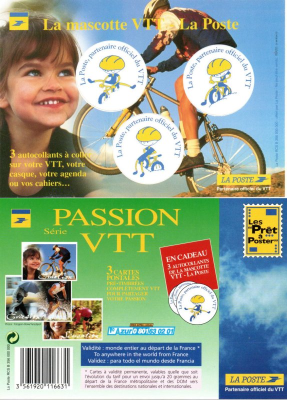 | Description | Carte pré-timbrée - série de 3 cartes sur la passion VTT |