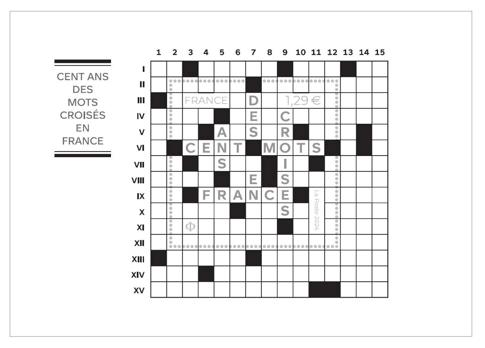 | Description | Émission d'un bloc composé d’un timbre à l’occasion des 100 ans des mots croisés en France. |