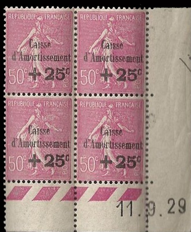 | Description | Au profit de la Caisse d'Amortissement. Type Semeuse lignée surchargée |