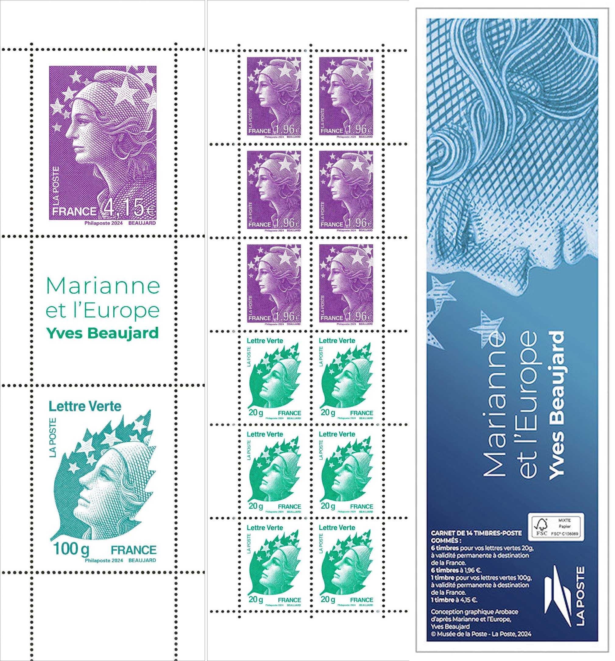| Description | Carnet spécial 14 timbres sur la Marianne est l'Europe d' Yves Beaujard |