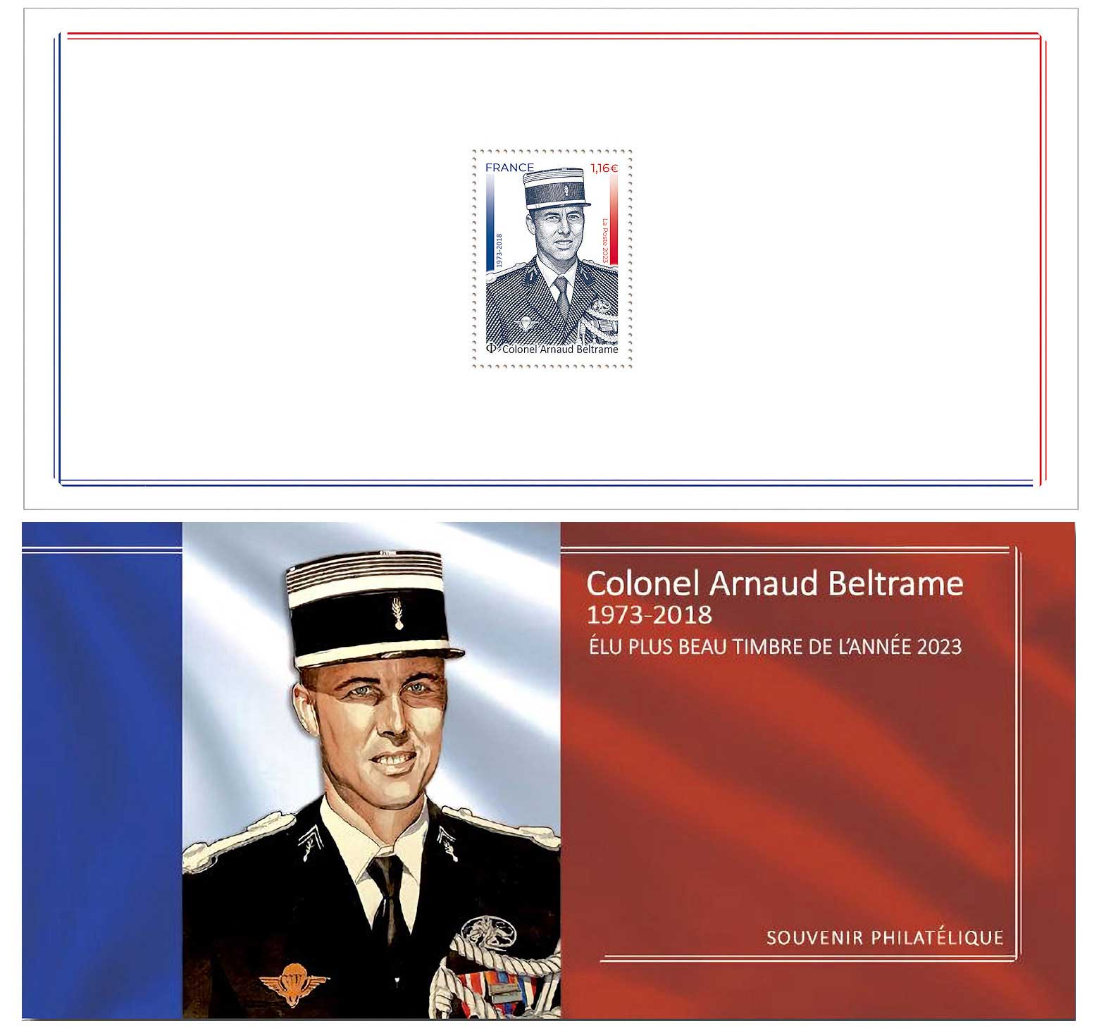 | Description | Émission du souvenir philatélique : DU PLUS BEAU TIMBRE DE L’ANNÉE 2023 : Colonel Arnaud BELTRAME 1973-2018 |