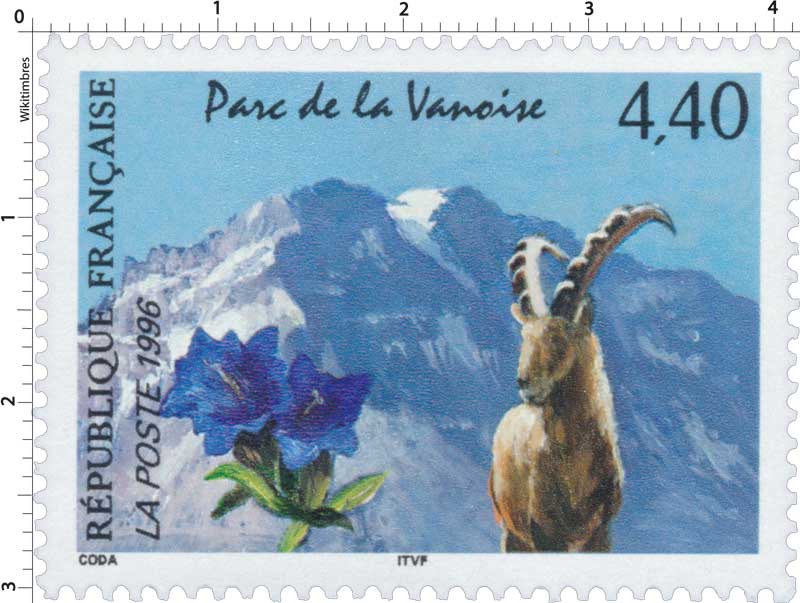 - Parc de la Vanoise. Bouquetin (Capra ibex) et gentiane