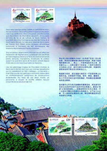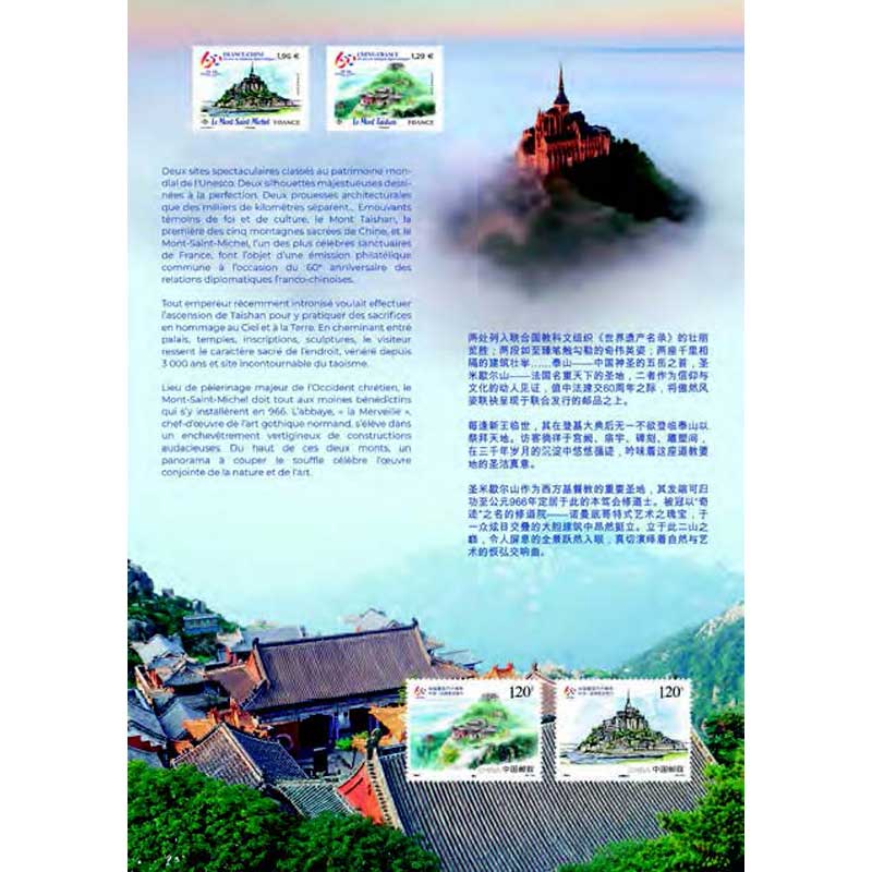| Description | La pochette philatélique trois volets, contient les deux timbres français et les deux timbres chinois. |