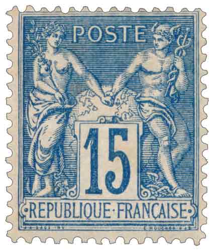 | Commentaire | Sage. Type IIC (N sous U) - Papier quadrillé. 3 déc. 1900 En savoir plus sur Wikipédia : Type sage ou allégorie de la Paix et le Commerce s’unissant Émis en avril 1892, le timbre Sage type II de 15 centimes bleu sur fond quadrillé remplace le 15 c bleu (n°90), beaucoup trop falsifié en raison de son usage massif pour la lettre simple intérieure. Pour sécuriser cette valeur essentielle, l’Administration introduit un procédé antifraude : un fond quadrillé incolore, imprimé en typographie avant l’impression du motif Sage. Cette innovation rend les contrefaçons beaucoup plus difficiles et marque une étape importante dans l’histoire des timbres classiques français. La nuance de bleu varie selon les tirages, du bleu franc au bleu légèrement grisé. En oblitéré, les cachets à date des bureaux ordinaires sont très courants, mais les plis intérieurs bien conservés illustrant l’usage postal réel sont les pièces les plus recherchées. Aucun faux d’époque notable n’est signalé pour cette variante quadrillée, le procédé ayant justement été conçu pour empêcher leur diffusion. Ce 15 c quadrillé constitue la dernière évolution majeure du type Sage avant l’apparition des timbres Blanc, Mouchon et Merson. |
