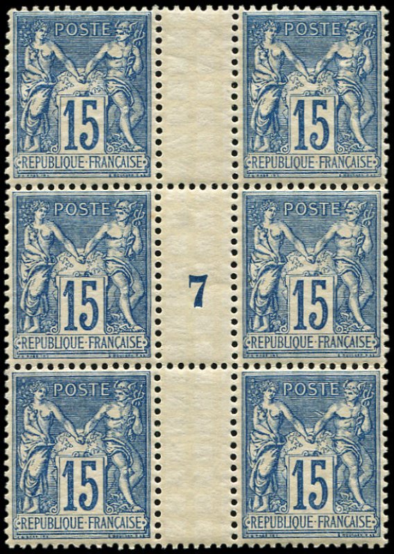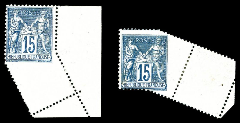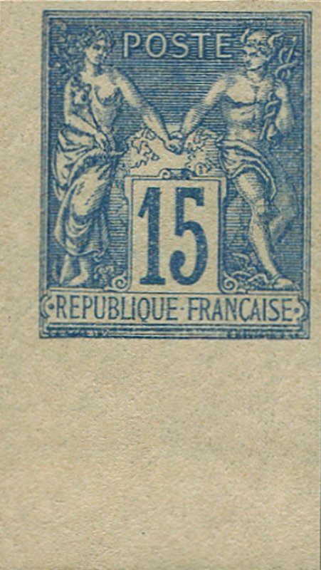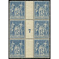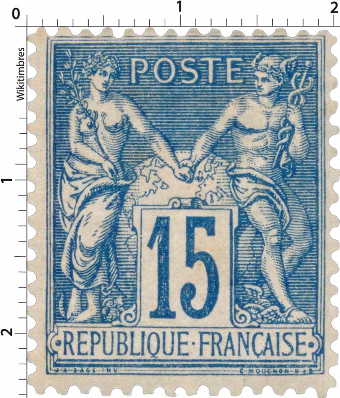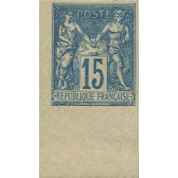 | Commentaire | Sage. Type IIC (N sous U) - Papier quadrillé. 3 déc. 1900 En savoir plus sur Wikipédia : Type sage ou allégorie de la Paix et le Commerce s’unissant Émis en avril 1892, le timbre Sage type II de 15 centimes bleu sur fond quadrillé remplace le 15 c bleu (n°90), beaucoup trop falsifié en raison de son usage massif pour la lettre simple intérieure. Pour sécuriser cette valeur essentielle, l’Administration introduit un procédé antifraude : un fond quadrillé incolore, imprimé en typographie avant l’impression du motif Sage. Cette innovation rend les contrefaçons beaucoup plus difficiles et marque une étape importante dans l’histoire des timbres classiques français. La nuance de bleu varie selon les tirages, du bleu franc au bleu légèrement grisé. En oblitéré, les cachets à date des bureaux ordinaires sont très courants, mais les plis intérieurs bien conservés illustrant l’usage postal réel sont les pièces les plus recherchées. Aucun faux d’époque notable n’est signalé pour cette variante quadrillée, le procédé ayant justement été conçu pour empêcher leur diffusion. Ce 15 c quadrillé constitue la dernière évolution majeure du type Sage avant l’apparition des timbres Blanc, Mouchon et Merson. |