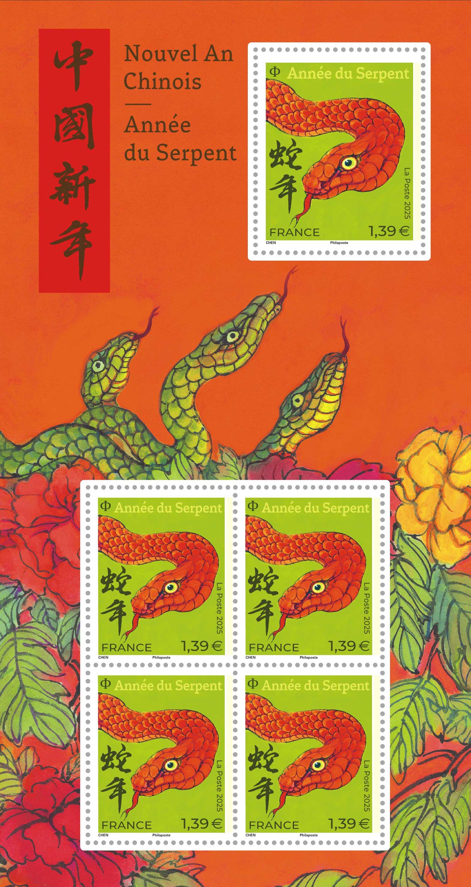 Description Émission de deux blocs de timbres consacrés à « l’Année du Serpent », du 29 janvier 2025 jusqu'au 16 février 2026.
