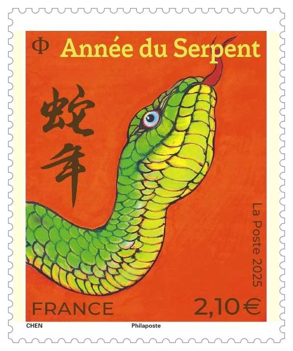 Le Serpent de bois s’avance avec lenteur, mais il sait déjà où il va. En cette année 2025, c’est lui que l’on célèbre à l’occasion du Nouvel an chinois, cette fête millénaire tissée de rouge, de feu et de mémoire. Pour moi, philatéliste de longue date, chaque nouvel animal du zodiaque est une promesse de timbre. Pas seulement un motif graphique, mais une image-pont entre les peuples, les symboles et les sensibilités. Le Serpent, lui, exige autre chose : il faut capter l’invisible. Ce n’est pas un animal qu’on illustre facilement. Il se cache, se glisse, s’observe à distance.