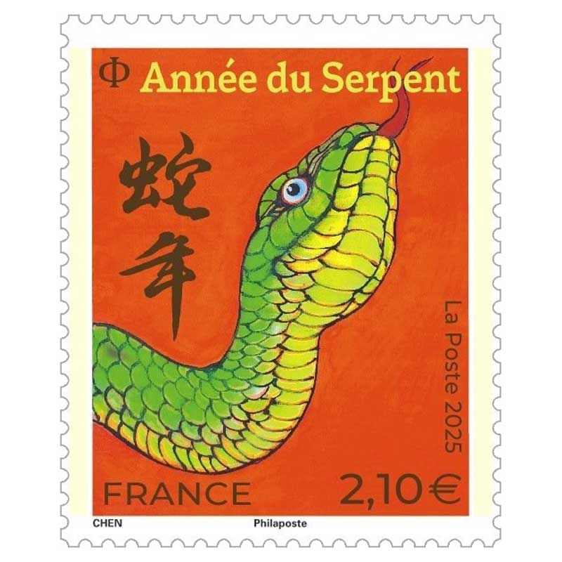 Le Serpent de bois s’avance avec lenteur, mais il sait déjà où il va. En cette année 2025, c’est lui que l’on célèbre à l’occasion du Nouvel an chinois, cette fête millénaire tissée de rouge, de feu et de mémoire. Pour moi, philatéliste de longue date, chaque nouvel animal du zodiaque est une promesse de timbre. Pas seulement un motif graphique, mais une image-pont entre les peuples, les symboles et les sensibilités. Le Serpent, lui, exige autre chose : il faut capter l’invisible. Ce n’est pas un animal qu’on illustre facilement. Il se cache, se glisse, s’observe à distance.