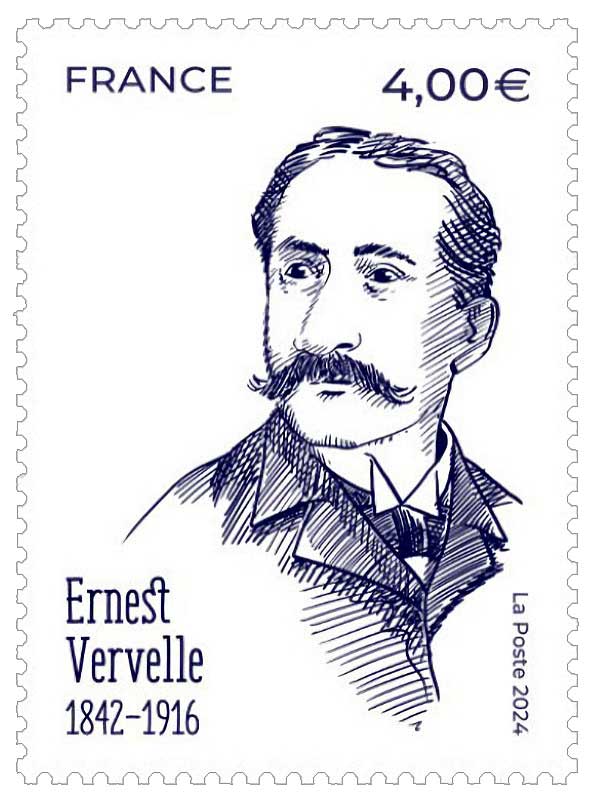 | Commentaire | Il y a dans ce timbre quelque chose de sobre, presque austère. Et c’est justement ce qui le rend fort. Le portrait d’Ernest Vervelle, centré, sans effet décoratif, attire l’attention par sa simplicité assumée. Ni arrière-plan évocateur, ni éléments illustratifs. Juste un homme, son nom, ses dates, et ce regard fixe, un peu grave, posé sur le monde — ou sur les générations de philatélistes qu’il a inspirées sans le savoir. Ce dépouillement n’est pas un oubli : c’est une forme d’hommage. Car Vervelle ne fut pas un homme de spectacle. Il fut un pionnier, un passionné méthodique, un collectionneur exigeant à une époque où la philatélie cherchait encore sa voie. Il appartenait à ces esprits du XIXe siècle qui voyaient dans le timbre autre chose qu’un bout de papier : un objet d’étude, un fragment d’Histoire, un prétexte à classement, à transmission, à dialogue. Graphiquement, ce timbre dit tout cela par le peu. Les couleurs sont discrètes, presque effacées : un fond clair, un costume sombre, un cadre noir. Pas d’emphase. Pas de mise en scène. Le choix typographique est classique, voire sévère. Mais derrière cette rigueur, on sent poindre le respect. Celui d’un monde philatélique qui n’oublie pas ses racines. Ce timbre rejoint la série des hommages aux grandes figures oubliées. Et il le fait à la manière d’un discret merci. Un clin d’œil sérieux, droit dans les yeux, à un homme qui avait compris, avant beaucoup d’autres, que collectionner, c’était déjà penser. ©WikiTimbres |