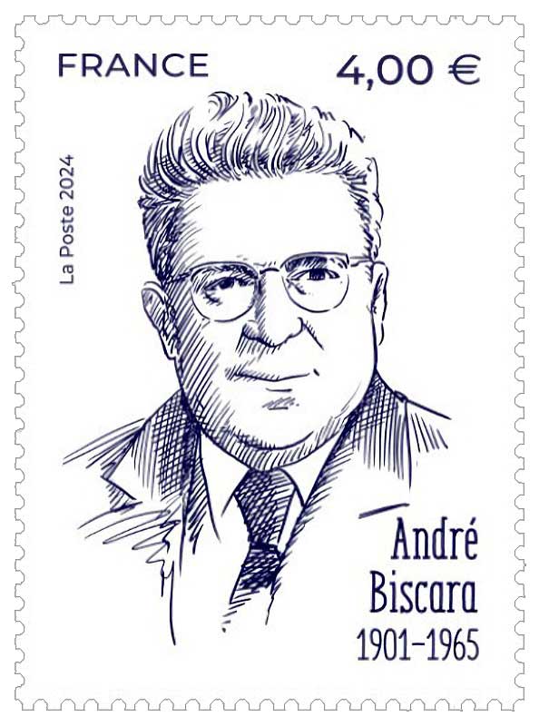| Commentaire | Un regard droit, des traits nets, une élégance sobre : le timbre dédié à André Biscara va à l’essentiel. Il ne cherche pas à impressionner, mais à évoquer avec justesse un homme dont l’influence, dans le monde de la philatélie française, fut discrète mais déterminante. Édité en 2024 aux côtés de cinq autres portraits de philatélistes de renom, ce timbre fait partie d’un rare hommage collectif à ceux qui ont bâti, transmis, structuré la passion des timbres. Et André Biscara mérite amplement d’y figurer. Homme de lettres, grand érudit, il fut l’un des cofondateurs de la Société française de philatélie postale, et joua un rôle fondamental dans l’étude, la classification et la vulgarisation des oblitérations et marques postales. À une époque où tout restait à faire, il sut allier rigueur scientifique et enthousiasme communicatif. Le graphisme du timbre en dit long sur le respect qu’il inspire : une palette sobre, un fond neutre, et ce portrait sans artifice, légèrement souriant, qui témoigne d’une personnalité à la fois sérieuse et chaleureuse. Pas de symbole ajouté, pas de décor illustratif : tout repose sur la force du visage, sur ce qu’il incarne pour les collectionneurs d’aujourd’hui. Ce timbre ne raconte pas un exploit ni une gloire tapageuse. Il souligne la contribution patiente d’un homme qui a su donner à la philatélie ses lettres de noblesse, par la connaissance, par l’écriture, par l’engagement. Il parlera sans doute aux spécialistes… mais aussi à tous ceux qui savent que le timbre n’est pas qu’un objet, mais un monde. Et qu’il faut parfois toute une vie pour en comprendre la richesse. ©WikiTimbres |