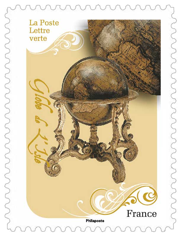| Description | Provenant du carnet de douze timbres-poste illustrés par des objets et oeuvres d'art sur le thème du globe terrestre au fil des siècles. |