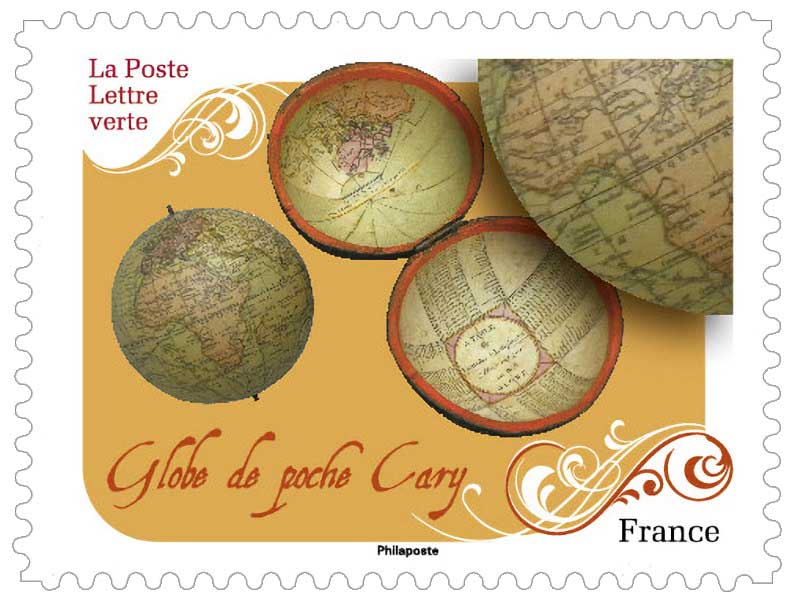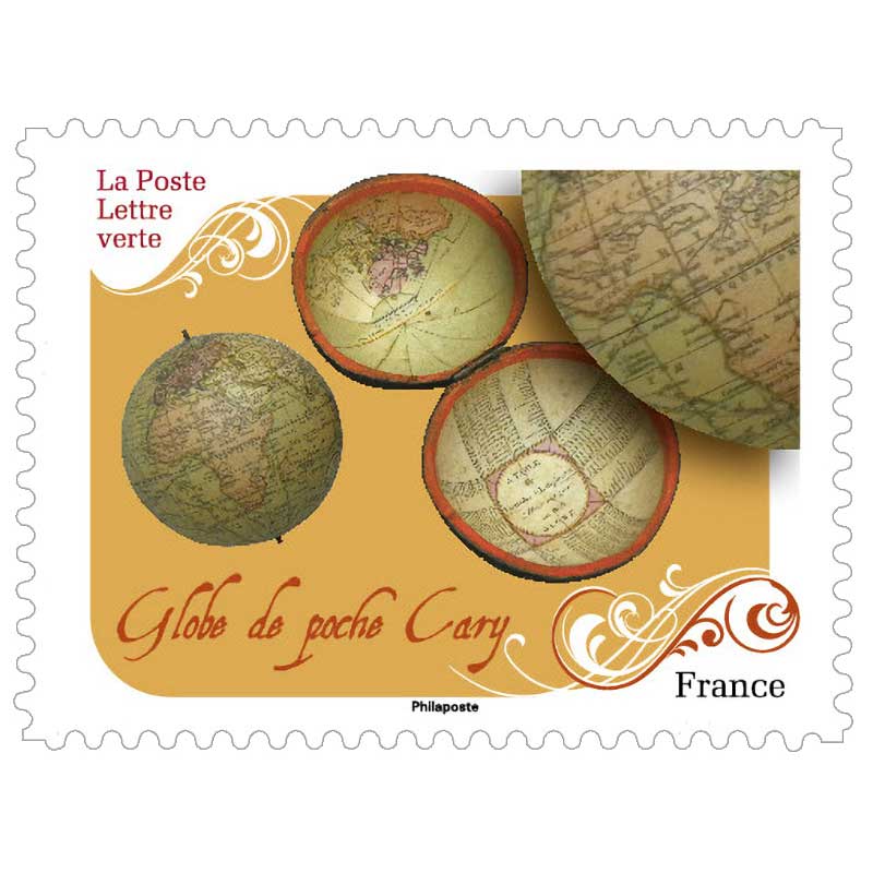 | Description | Provenant du carnet de douze timbres-poste illustrés par des objets et oeuvres d'art sur le thème du globe terrestre au fil des siècles. |