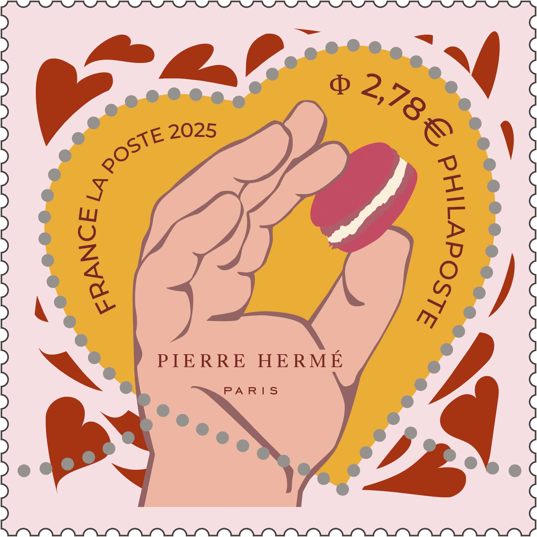 | Description | Série annuelle "Cœur" : cette année, émission de deux timbres emblématiques, le "Cœur Ispahan" et le "Cœur Macaron". |
