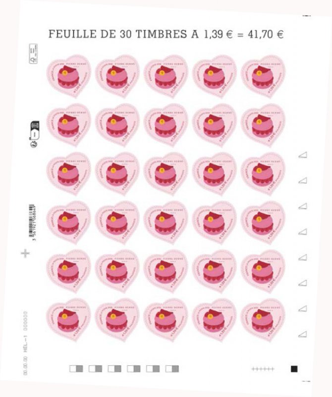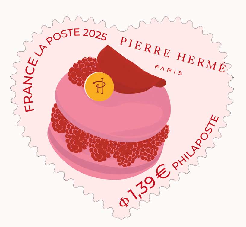 | Description | Série annuelle "Cœur" : cette année, émission de deux timbres emblématiques, le "Cœur Ispahan" et le "Cœur Macaron". |