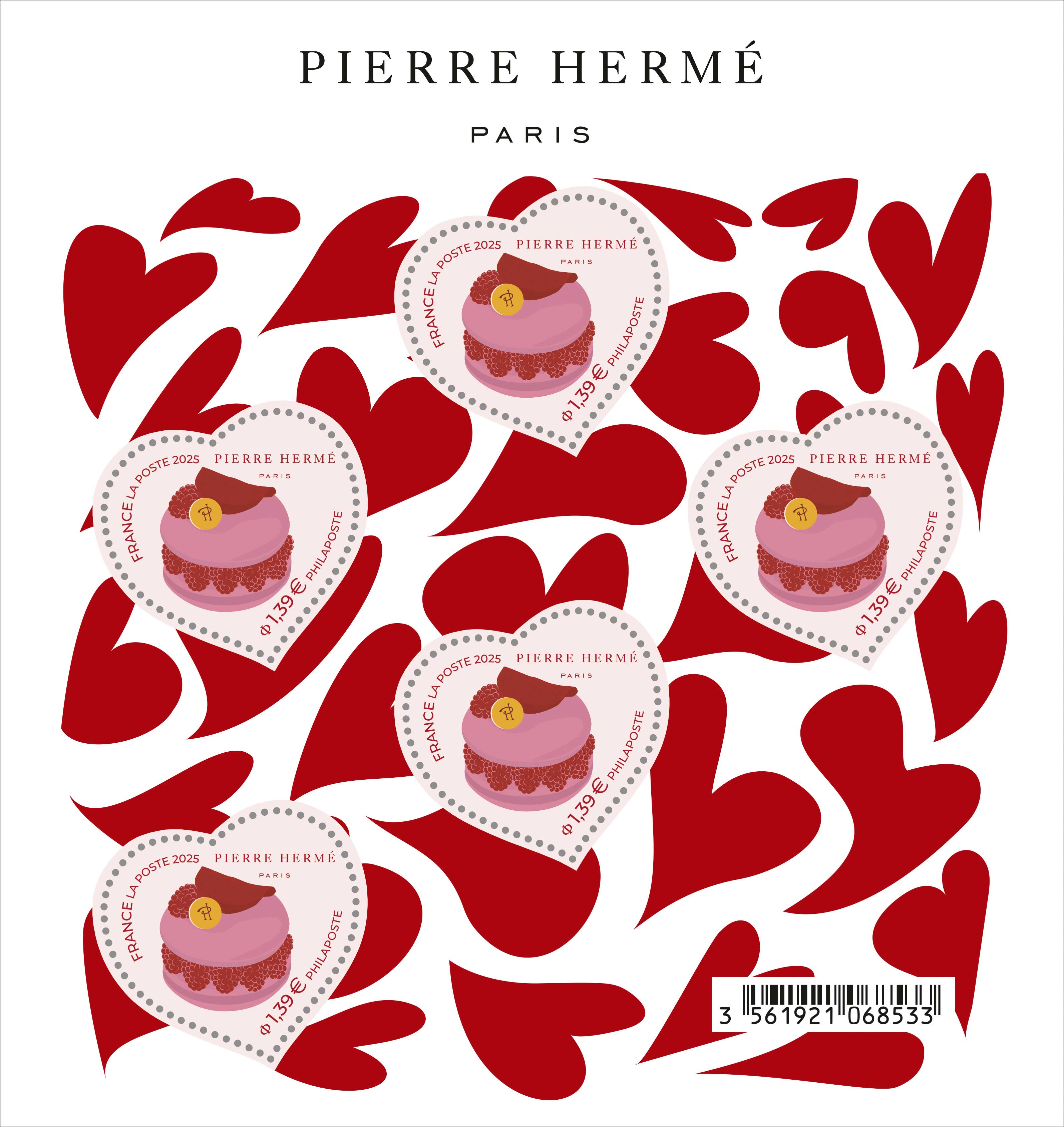 | Commentaire | En savoir plus sur Wikipédia : Pierre Hermé émission de 350 000 blocs de 5 TP Depuis plus de 20 ans, La Poste célèbre la Saint-Valentin en proposant chaque année une série de timbres inédits, conçus pour transmettre amour et tendresse aux quatre coins du monde. Chaque édition met à l’honneur un designer, un styliste ou une maison emblématique, offrant ainsi une création unique et élégante. Pour 2025, La Poste perpétue cette tradition en collaborant avec la prestigieuse Maison Pierre Hermé Paris. Ensemble, ils dévoilent une collection exquise de timbres : le Timbre Cœur Ispahan et le Timbre Cœur Macaron, symboles d’un mariage subtil entre la philatélie et la haute pâtisserie française. Ce dialogue raffiné entre deux institutions iconiques illustre l’art de vivre à la française, alliant créativité et savoir-faire d’exception. Pierre Hermé, né le 20 novembre 1961 à Colmar (Haut-Rhin), est l’héritier de quatre générations de boulangers-pâtissiers alsaciens. Initié très jeune à son métier, il débute son apprentissage à l’âge de 14 ans auprès du célèbre Gaston Lenôtre (1920-2009). Par la suite, il perfectionne son art au sein de maisons prestigieuses telles que Fauchon Paris (référence en gastronomie de luxe depuis 1886) et Ladurée (fondée en 1862, synonyme de raffinement pâtissier). En 1997, il crée sa propre maison, Pierre Hermé Paris, qui deviendra un symbole mondial de l’excellence pâtissière. Avec cette collaboration, La Poste et Pierre Hermé unissent leurs talents pour faire de la Saint-Valentin 2025 une célébration pleine de gourmandise et d’élégance. |