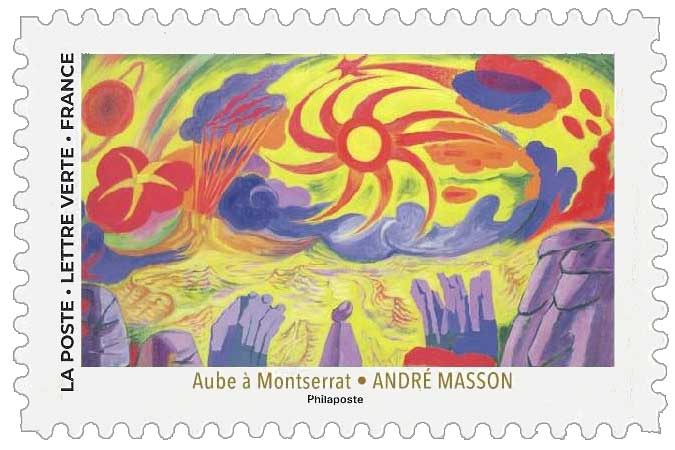| Commentaire | L’Aube à Montserrat d’André Masson n’est pas une représentation fidèle d’un lever de soleil : c’est une naissance. Tout y bouillonne, se tord, s’éclaire, comme si les formes hésitaient encore entre la roche et la flamme. Le paysage catalan devient un théâtre intérieur, une montagne vivante, vibrante, traversée de pulsations presque mystiques. Masson, dans cette œuvre, ne peint pas un lieu mais une tension. Et cette tension, on la retrouve parfois dans le monde du timbre, quand l’image se libère de l’anecdotique pour entrer dans l’épure, dans le symbole. Je pense à l’émission française de 1989, rendant hommage aux peintres du XXe siècle, où un timbre reproduisait Automne aux Deux Magots. On y percevait déjà cette volonté de transcrire l’invisible, de capter la sensation plus que la forme. Avec Aube à Montserrat, le défi serait encore plus délicat : comment faire tenir l’éveil du monde dans une vignette de quelques centimètres ? Il faudrait oser les rouges éclatés, les lignes fragmentées, et surtout, ne pas chercher à expliquer. Un timbre inspiré de Masson ne serait pas à décoder, mais à sentir. Il appellerait le silence, un regard plus long, une pause. À l’image de cette aube qui ne dit rien, mais fait tout renaître. ©WikiTimbres |