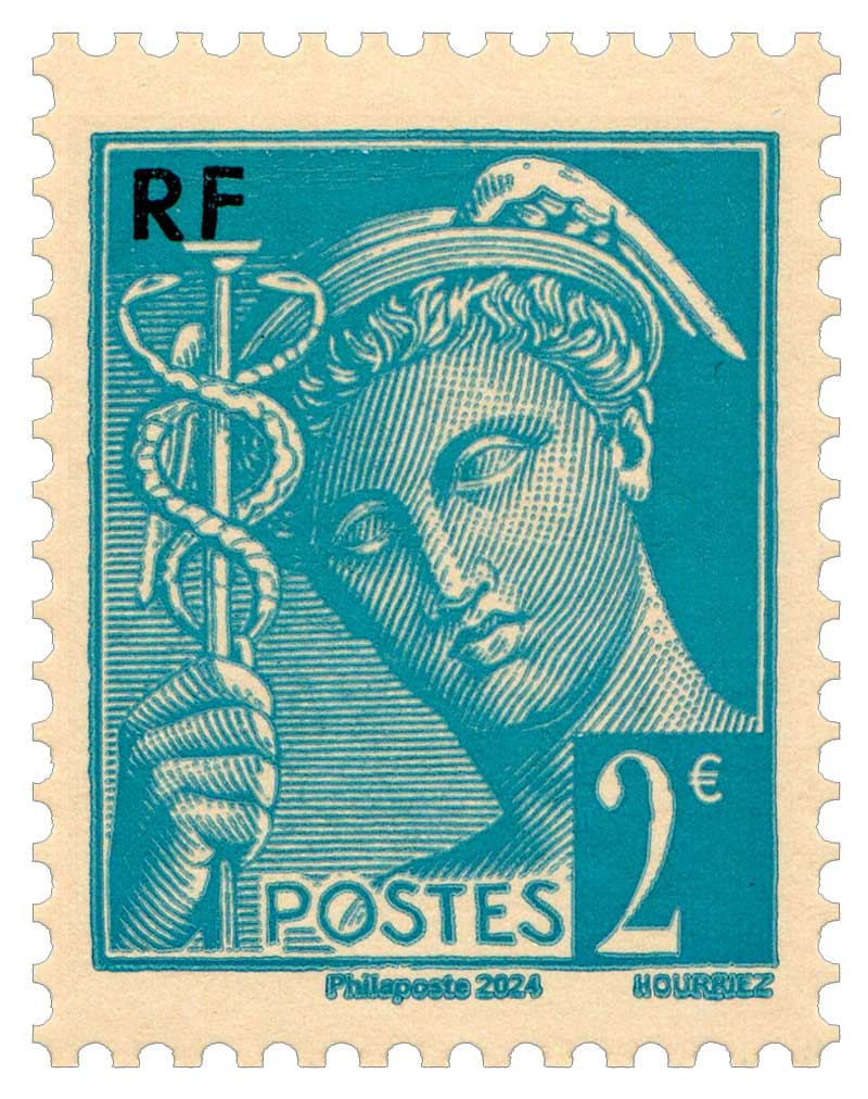 | Description | Provenant du bloc à l’occasion du 80e anniversaire des timbres types Iris et Mercure, dessinés et gravés par Georges Hourriez, émis en 1944. |