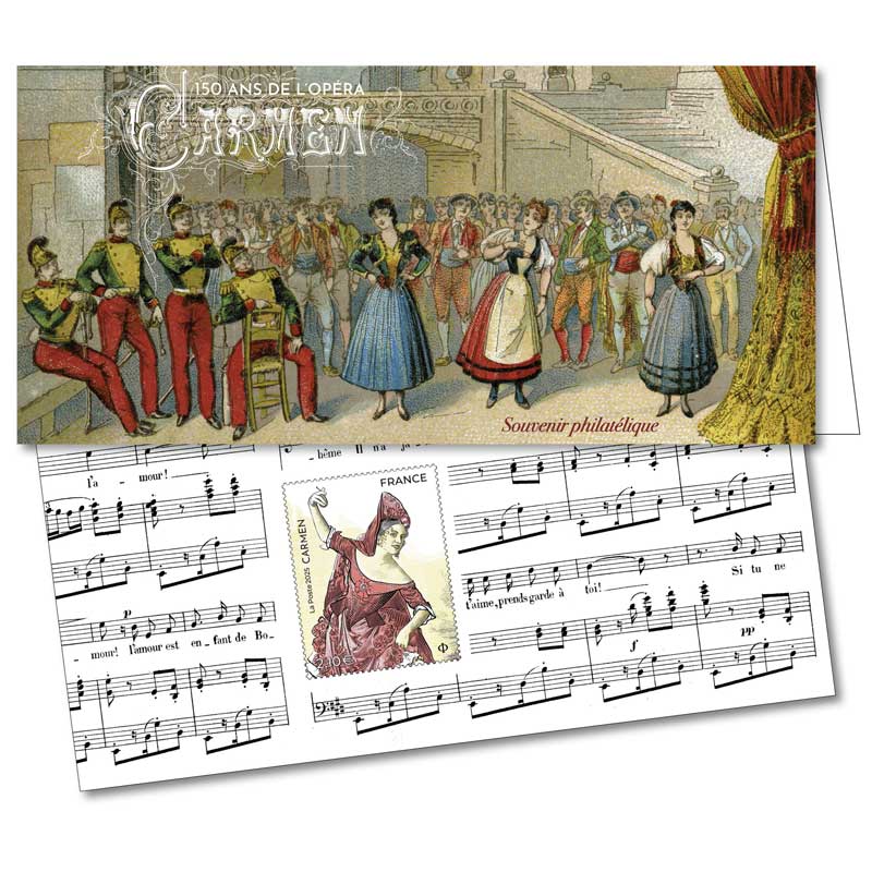 - Émission d'un souvenir philatélique à l’occasion des 150 ans de la première représentation du célèbre opéra CARMEN composé par Georges BIZET.