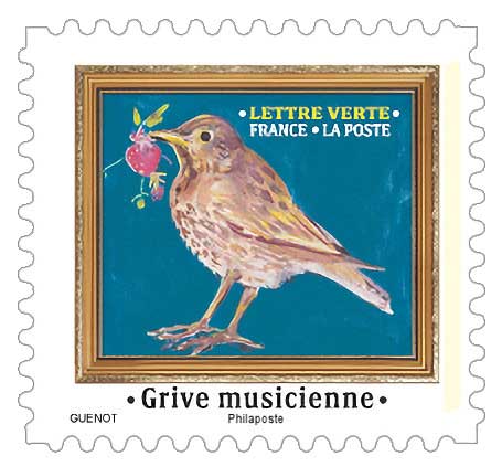 | Description | Provenant du carnet de douze timbres-poste, illustré par des oiseaux, chardonneret, rouge-gorge ou merle …, premiers musiciens de notre terre. |