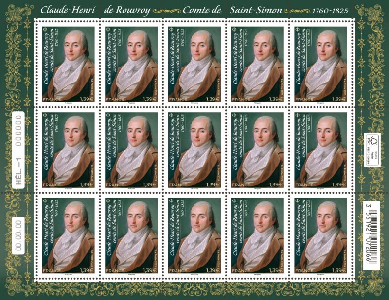 | Description | Émission d'un timbre à l’effigie de Claude-Henri de Rouvroy, grand penseur et auteur de livres importants, à l’occasion du bicentenaire de sa disparition. |
