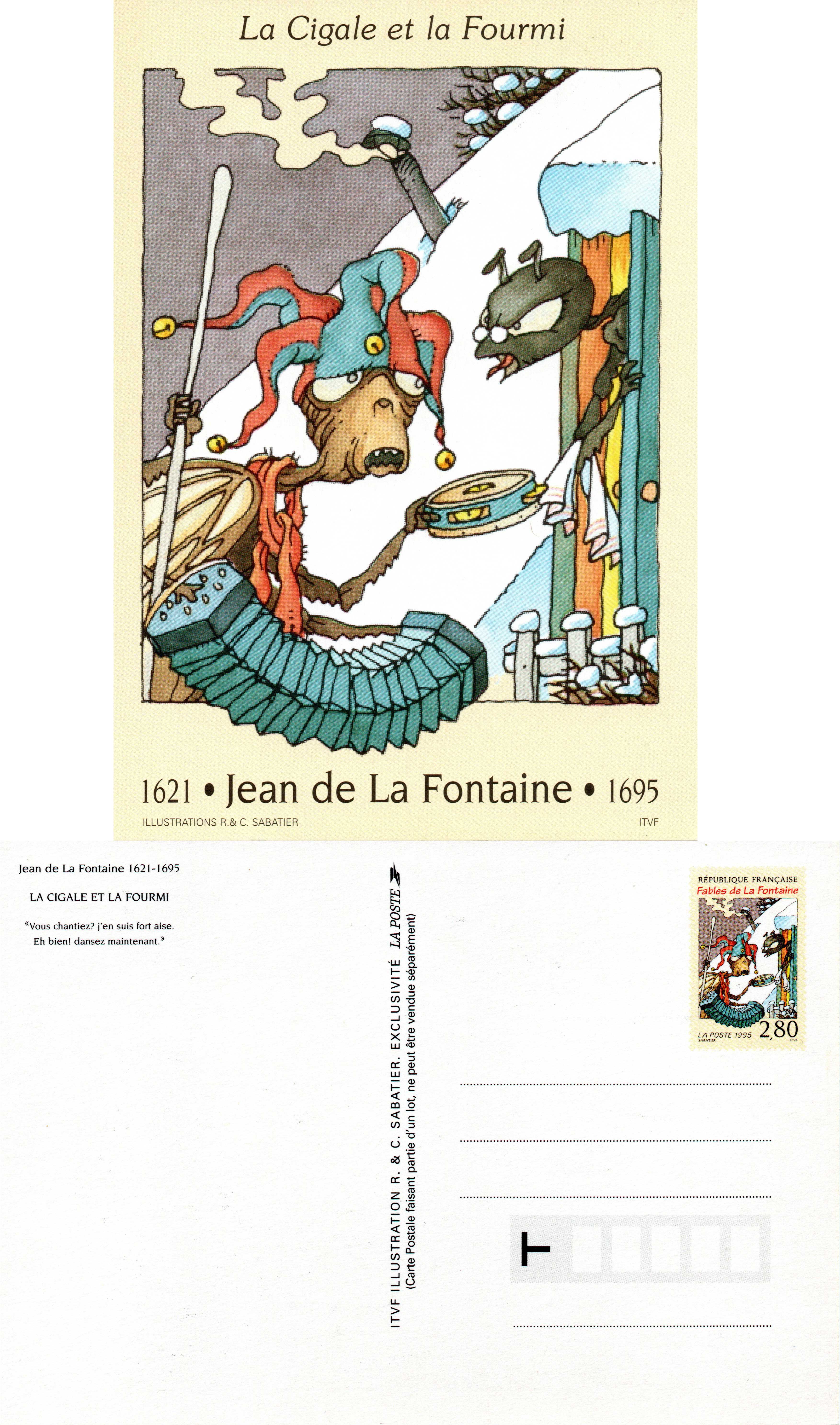 | Description | Carte pré-timbrée - série de 6 cartes sur Les Fables de Jean de la Fontaine 1621 - 1695 |