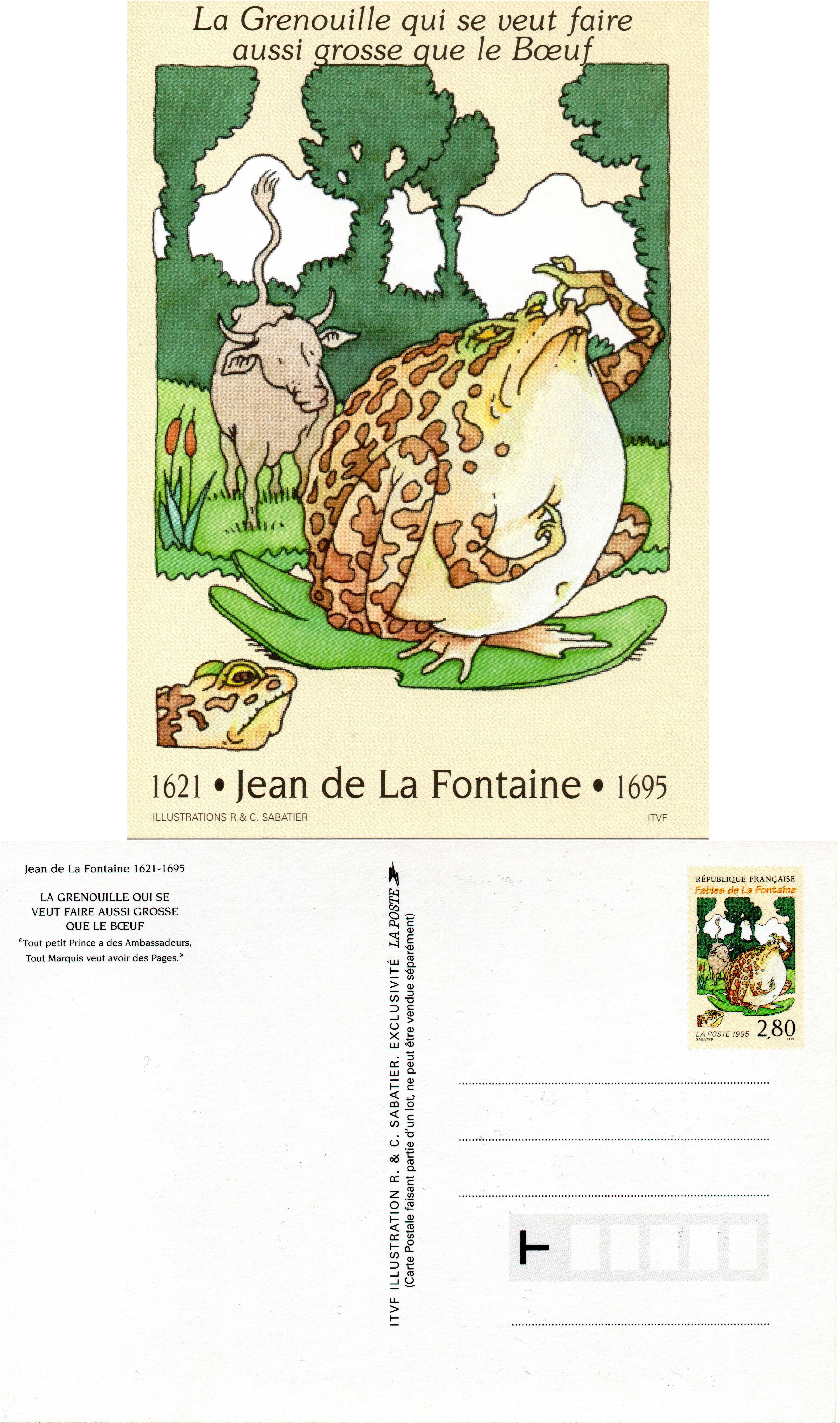 | Description | Carte pré-timbrée - série de 6 cartes sur Les Fables de Jean de la Fontaine 1621 - 1695 |