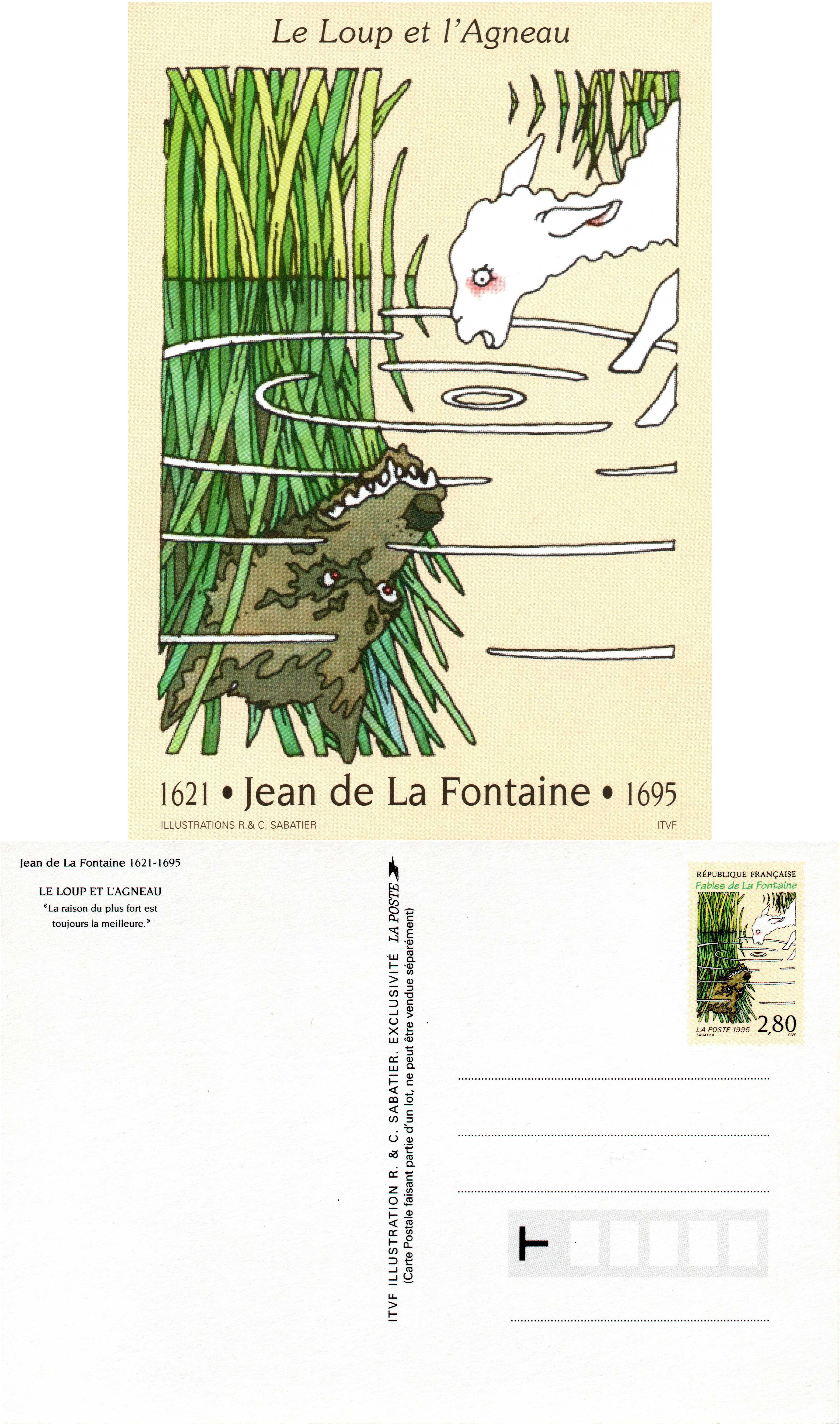 | Description | Carte pré-timbrée - série de 6 cartes sur Les Fables de Jean de la Fontaine 1621 - 1695 |