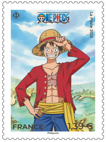 | Description | Émission d'un timbre mettant à l’honneur Luffy, un carnet de 12 timbres autocollants illustrant les membres de l’équipage de Chapeau de Paille ainsi que leur célèbre navire, le Thousand Sunny ; et un collector de 4 timbres « Les quatre nouveaux empereurs ». |