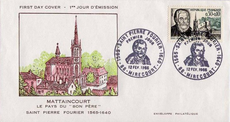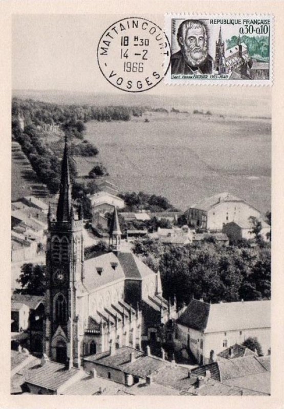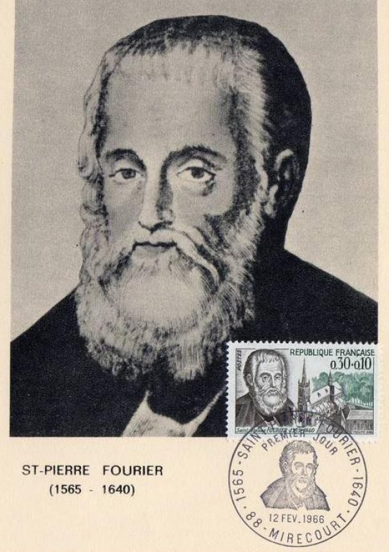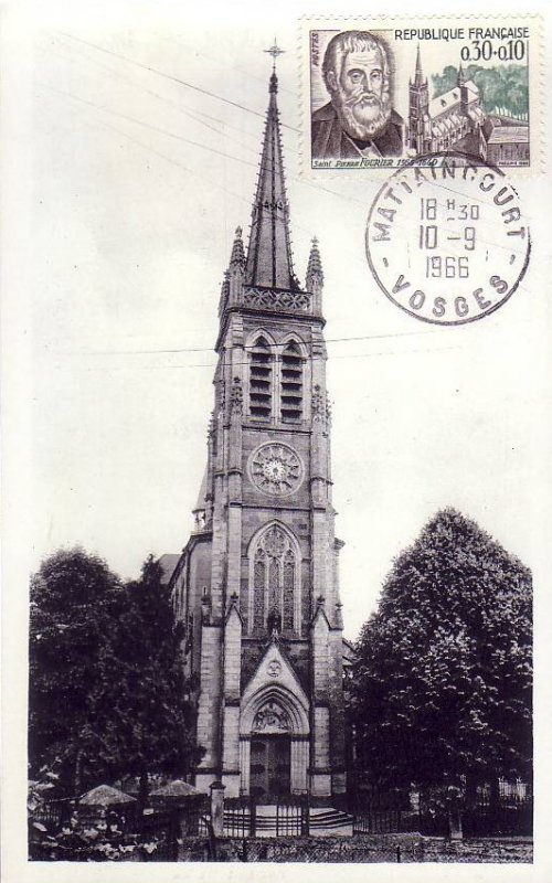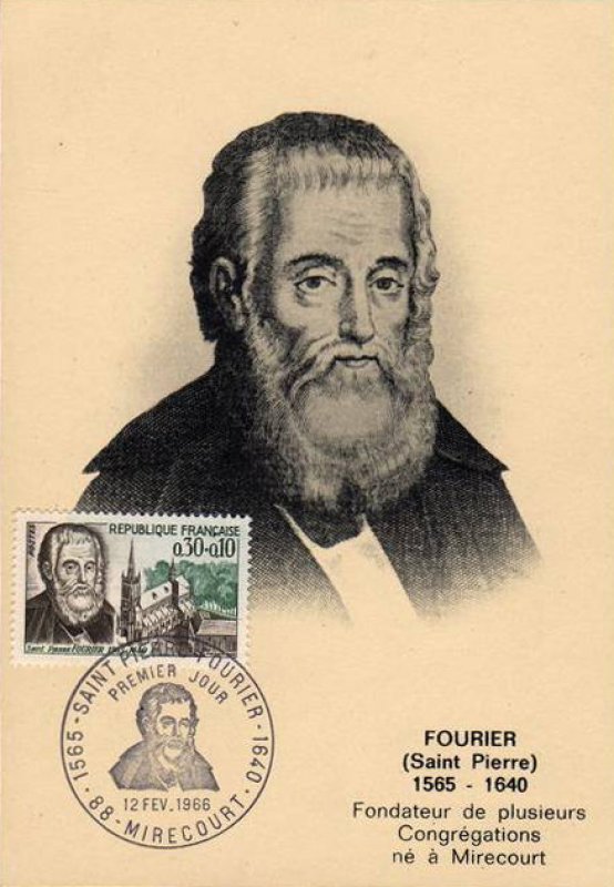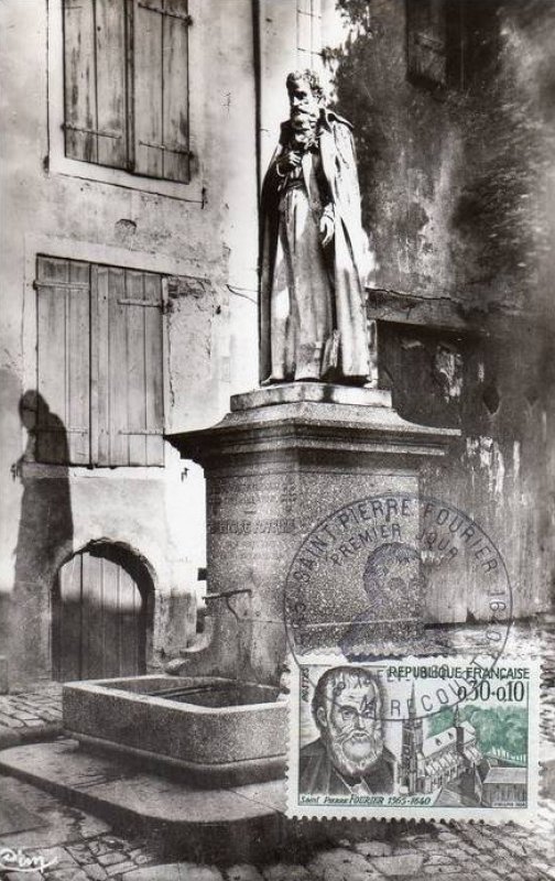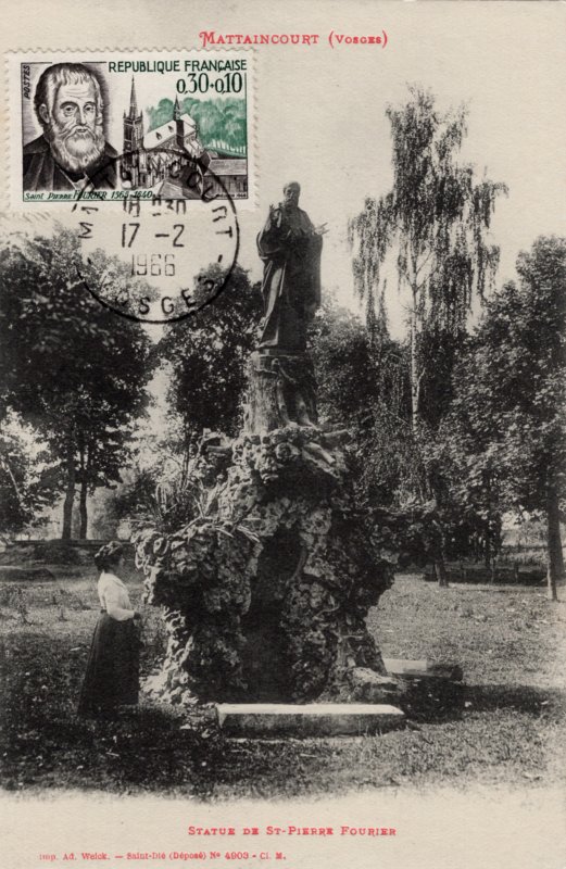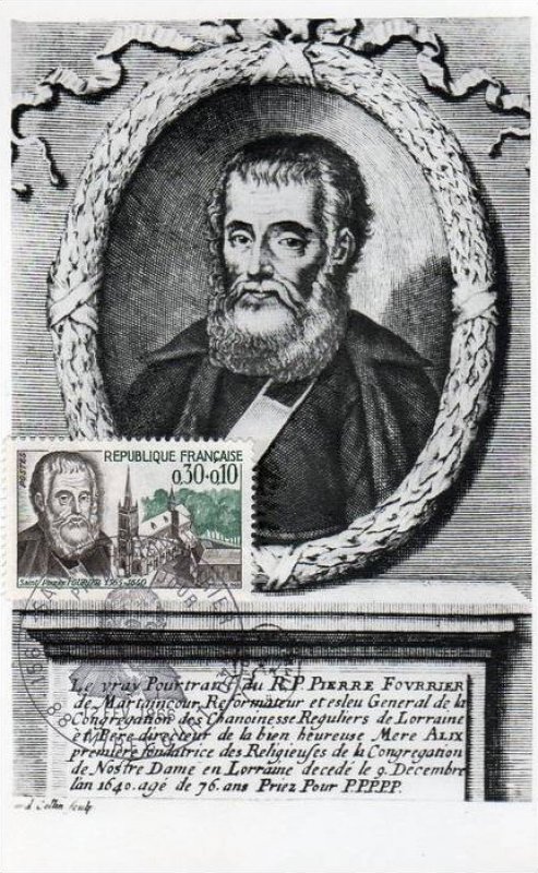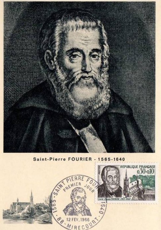 | Description | Saint Pierre Fourier (1565-1640), religieux et représentation de la basilique Saint-Pierre Fourier à Mattaincourt (Vosges) |