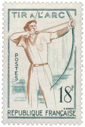 | Commentaire | Les recherches archéologiques ont permis la découverte de fragments d'arcs et de flèches conservés dans des tourbières datant de la fin du Paléolithique supérieur. Toutefois il existe de forte présomption de l'usage de l'arc dès les phases anciennes de cette période de la Préhistoire. Apollon est le dieu des archers, considéré métaphoriquement comme tirant des flèches invisibles. Artémis (Diane), déesse des zones sauvages et de la chasse, et Éros (Cupidon), dieu de l'amour, sont souvent représentés avec un arc. Les archers sont des divinités ou des héros dans plusieurs autres mythologies. Visuel : Le tir à l'arc est apparu pour la première fois aux Jeux Olympiques en 1900 et a été reconduit en 1904 – 1908 et 1920. Aux J.O. de 1904, le tir à l'arc fut l'un des premiers sports à inclure des femmes. |