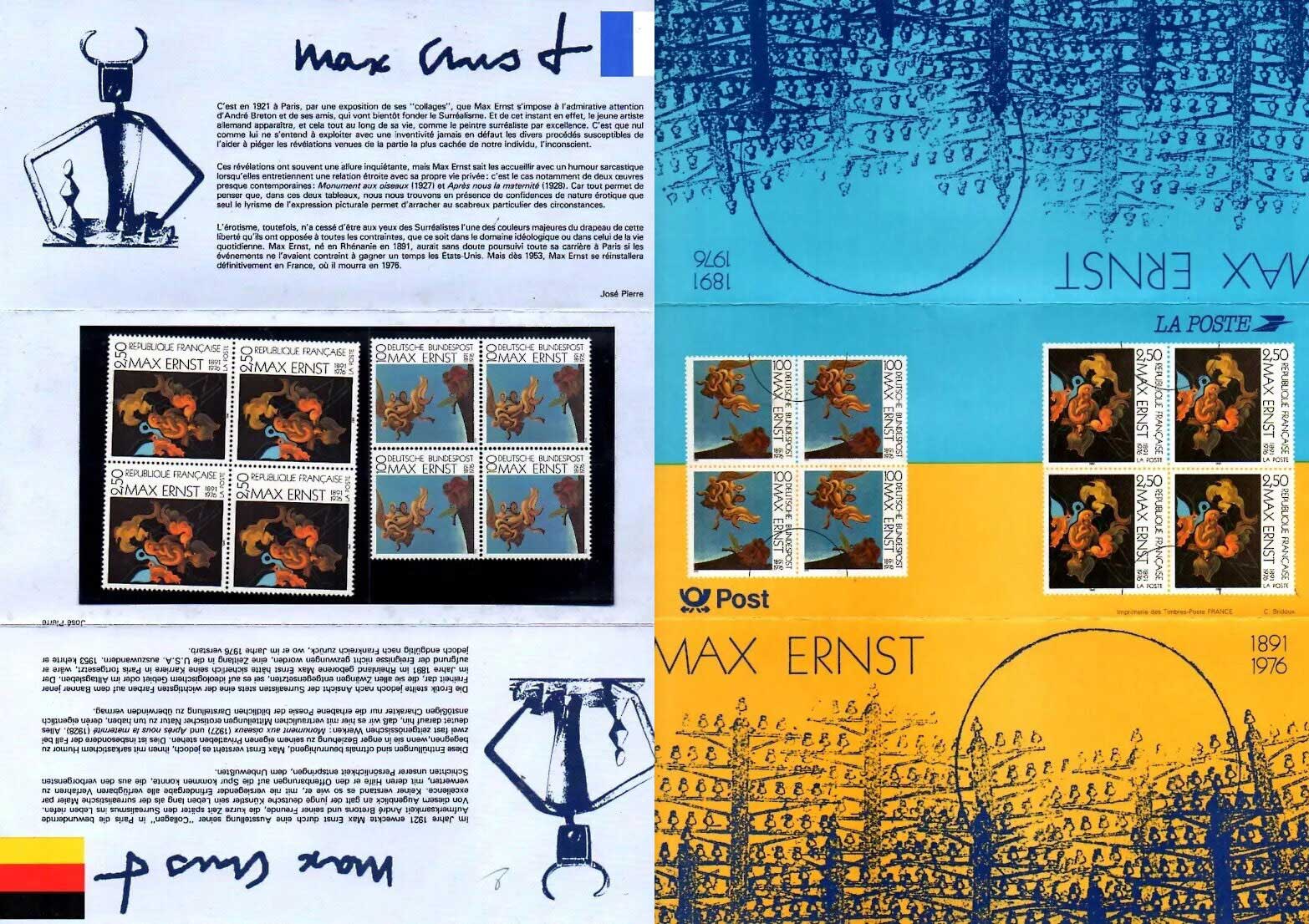 | Description | Pochette pour le centenaire de la naissance de Max Ernst (1891-1976), peintre et sculpteur allemand (œuvre: After Us, Motherhood). Émission conjointe franco-allemande |