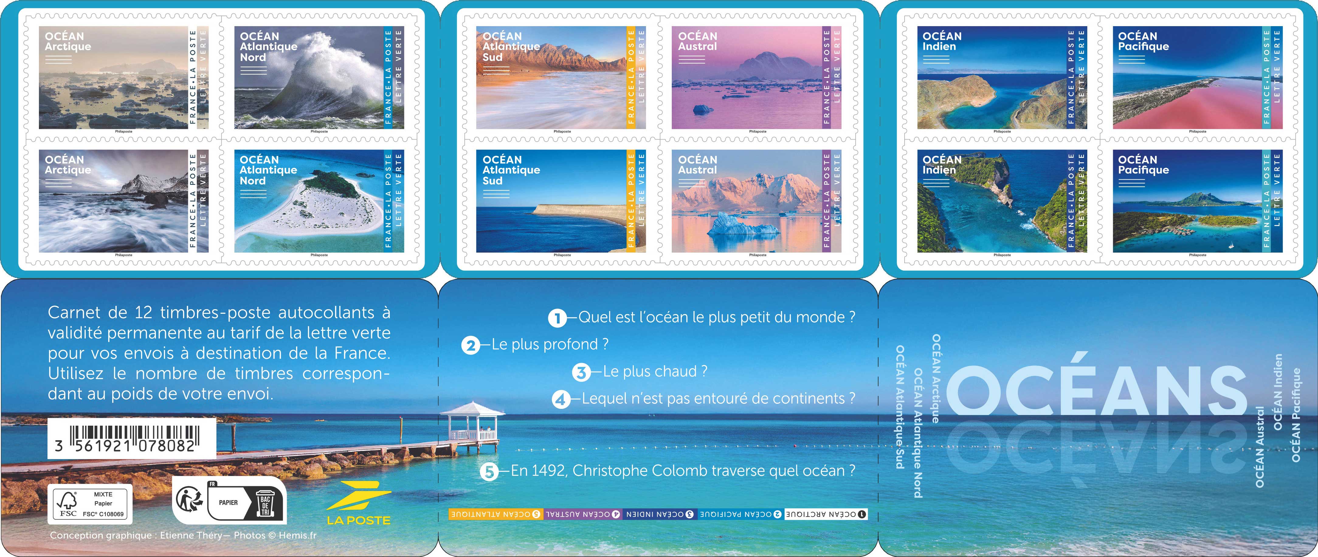 | Description | Émission d'un carnet de douze timbres-poste, illustré par des photographies des océans. |