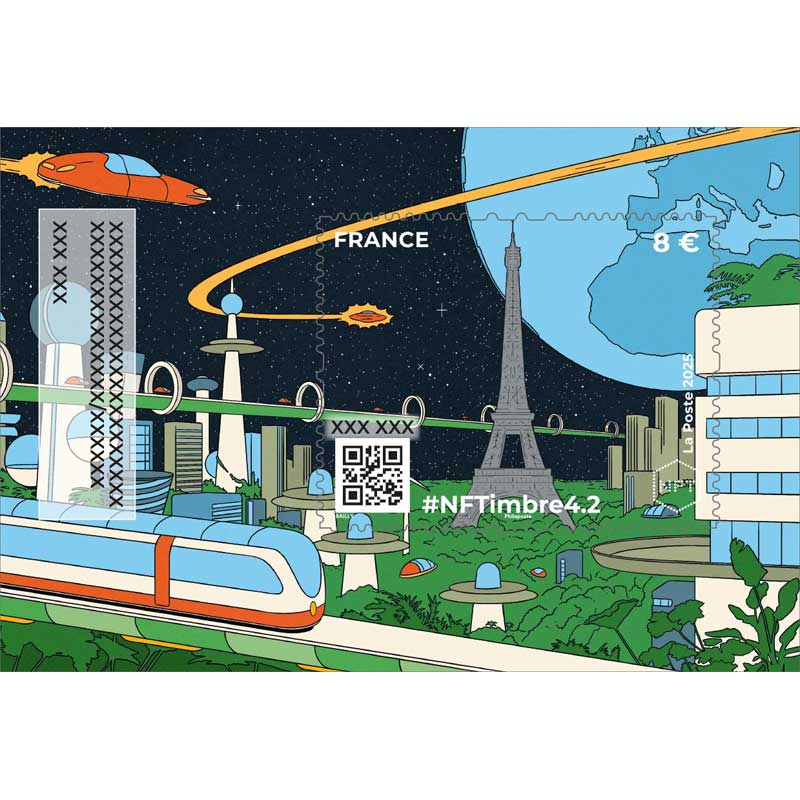 | Commentaire | 15 000 exemplaires numérotés Présentation : bloc d’un timbre inséré dans une pochette et mis sous film pour préserver son intégrité. Format des timbres : 52 x 40,85 mm La Poste fait un truc plutôt cool qui mixe deux mondes un peu improbables : la philatélie traditionnelle et la tech futuriste. Le 4 juin 2025, ils lancent une nouvelle collection baptisée Monuments 3.0, avec un clin d’œil hyper moderne aux NFT. Oui, ces fameux jetons numériques que certains collectionnent comme des œuvres d’art. Là, c’est la tour Eiffel qui est à l’honneur, mais pas comme on l’a vue mille fois : elle est transportée dans un univers futuriste, un peu comme une cité sur une autre planète, entourée d’une végétation luxuriante. C’est l’illustrateur Simon Bailly, connu pour son style bande dessinée, qui a imaginé cette version. Là où ça devient intéressant, c’est que chaque timbre est lié à un NFT, ce qui garantit son authenticité et sa provenance grâce à la blockchain. En gros, tu sais exactement d’où vient ton timbre, qui l’a créé, et tu as la preuve que t’es le seul à le posséder. Pas possible de faire de copies pirates, ça tient debout, non ? Et pour les collectionneurs un peu maniaques, il y a même des versions bronze, argent, et or, avec un tirage limité pour chacun (15 000, 10 000 et 5 000 exemplaires). Tu peux aussi acheter un Pack Platinium qui rassemble les trois versions, avec un bonus numérique offert. Petite anecdote sympa : ce genre d’initiative montre comment un objet aussi ancien que le timbre peut s’adapter aux nouvelles technologies et continuer à fasciner. D’ailleurs, La Poste sera à Lisbonne début juin pour une conférence sur le Web3, un univers où se mêlent art, jeux vidéo, mode et, oui, même les timbres. C’est un peu comme si les timbres entraient dans le XXIe siècle en claquant des doigts. C’est fou de penser que ces petits bouts de papier, souvent vus comme ringards, peuvent désormais être des pièces uniques, quasi indestructibles, avec une valeur certifiée. L’avenir de la collection, c’est peut-être ça : un mélange d’ancien et de nouveau, une vraie passerelle entre tradition et numérique. WikiTimbres |
