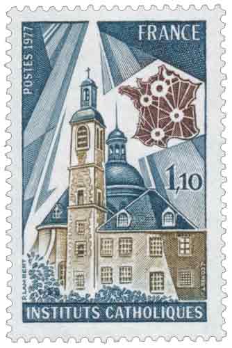 | Commentaire | Ce timbre s’inscrit dans une série d’émissions de la Poste française consacrées aux grandes institutions éducatives et culturelles, en mettant en lumière le rôle singulier des instituts catholiques dans l’histoire de l’enseignement supérieur en France. Son sujet renvoie directement aux conséquences de la loi de 1875 sur la liberté de l’enseignement supérieur, qui permit à des établissements non étatiques de se constituer en dehors du cadre universitaire public. Dès la fin du XIXᵉ siècle, ces instituts furent créés dans plusieurs grandes villes afin de proposer une formation intellectuelle complète, articulant savoirs théologiques, disciplines profanes et réflexion philosophique, dans un contexte marqué par de vifs débats entre partisans du monopole universitaire et défenseurs du pluralisme éducatif. Ce timbre évoque cette construction progressive, marquée par des figures intellectuelles et scientifiques majeures, et par une volonté affirmée de dialogue entre foi, science et société. L’illustration choisie, centrée sur l’église des Carmes à Paris et accompagnée d’une représentation cartographique, symbolise l’ancrage territorial et la diversité géographique de ces établissements, présents notamment à Angers, Lille, Lyon, Paris et Toulouse. Au moment de son émission, ce timbre témoigne aussi de l’évolution du rôle des instituts catholiques au XXᵉ siècle : intégrés dans le paysage académique français, ouverts à la recherche, aux sciences humaines et aux échanges internationaux, ils participent désormais à la formation de cadres, d’enseignants et de chercheurs, tout en conservant leur identité propre. À travers ce timbre, la politique commémorative française souligne ainsi une facette essentielle de l’histoire éducative nationale, où pluralité institutionnelle et héritage intellectuel se conjuguent dans la durée. Article rédigé pour WikiTimbres |