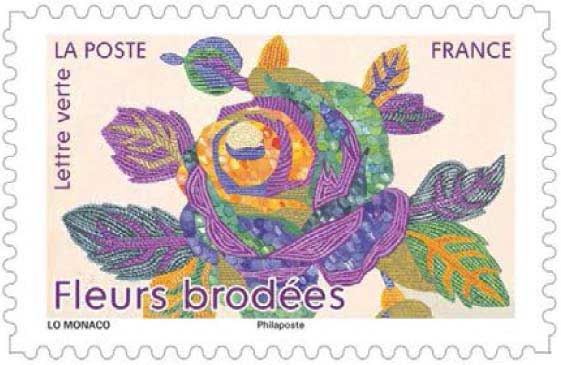 | Description | Provenant du carnet de douze timbres-poste, illustré par des fleurs brodées en trompe-l’oeil. |