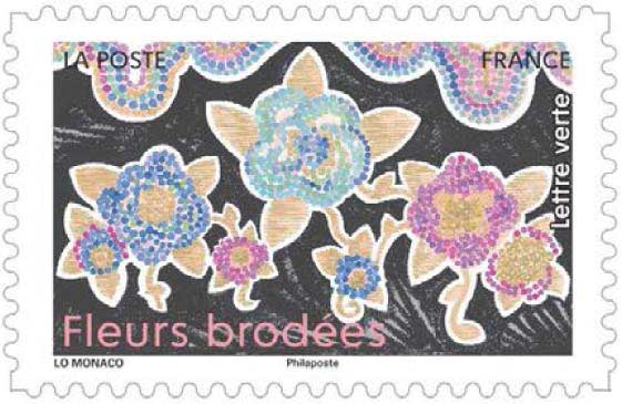 | Description | Provenant du carnet de douze timbres-poste, illustré par des fleurs brodées en trompe-l’oeil. |