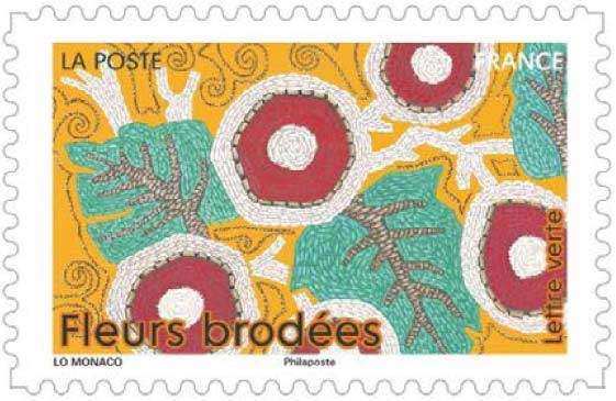 | Description | Provenant du carnet de douze timbres-poste, illustré par des fleurs brodées en trompe-l’oeil. |