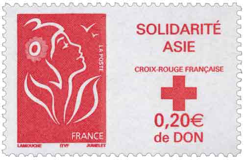 | Description | Solidarité Asie. Croix-Rouge française. Timbre avec surtaxe au profit des sinistrés du tsunami. Timbre sur timbre. Sans valeur indiquée (validité permanente) |