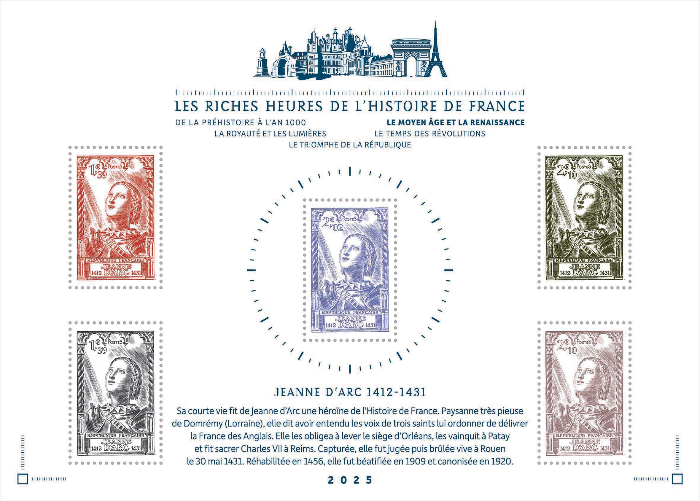 | Description | Provenant de l'émission de 11 feuillets qui vous propose de découvrir ou de redécouvrir, au travers de cette nouvelle édition répartie sur cinq ans, des timbres d’exception retraçant l’Histoire de France contée par la philatélie. |