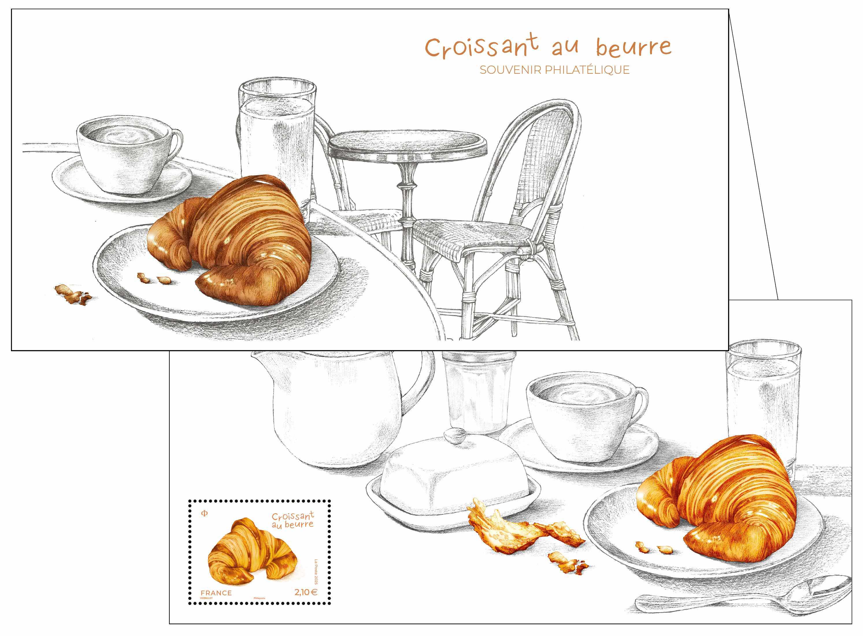 | Description | Émission d'un souvenir philatélique odorants, illustrés par un délicieux croissant au beurre, un classique de la boulangerie artisanale française. |
