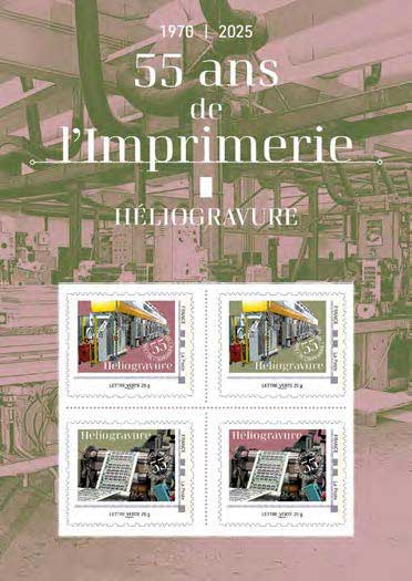 | Commentaire | Héliogravure Les timbres sont illustrés par une presse hélio Rotomec installée en 2006, rotative hélio, 10 groupes d’impression recto/verso et l’impression d’une feuille de timbres sur une machine Chambon 6 couleurs, acquise en 1964. |