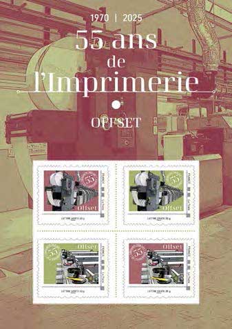 | Commentaire | Offset Les timbres sont illustrés par une rotative offset DG Press 2023, 7 couleurs et une offset feuille Man Roland 2013, 6 groupes d’impression. |