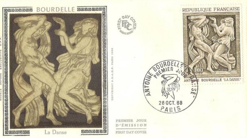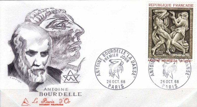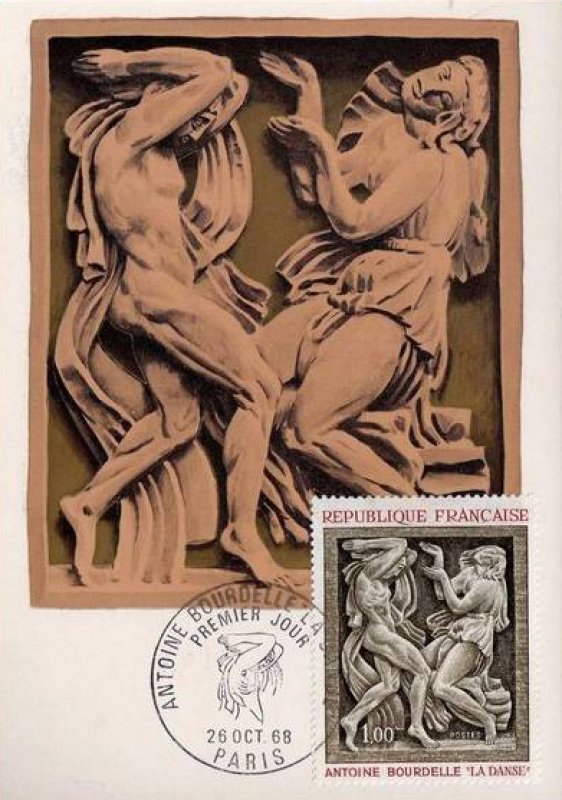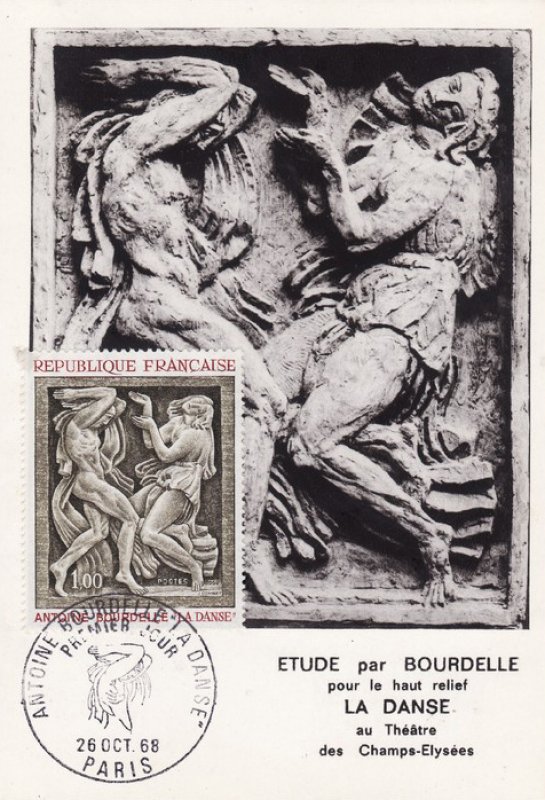 | Commentaire | Tu sais ce que j’ai lu ce matin en buvant un café pas terrible, place de la Contrescarpe ? Un truc qui m’a fait voyager. Figure-toi que Bourdelle — ouais, Antoine Bourdelle, le sculpteur — a complètement basculé après avoir vu danser Isadora Duncan en 1910. Genre, révélation. Il l’a vue bouger, et là, d’un coup, paf : toutes ses statues, ses muses, ses idées fixes se sont mises à danser aussi. C’est lui qui l’a dit, hein, pas moi. Je cite de mémoire : "elle est immortelle et mortelle… toute la loi du divin." T’imagines un peu l’impact ? Bref, ce qu’on appelle aujourd’hui La Danse, le haut-relief qu’on voit sur la façade du Théâtre des Champs-Élysées (tu sais, celui près de l’avenue Montaigne), c’est un bout d’elle figé dans le marbre. Enfin… pas tout à fait figé. Parce que dans le relief, elle flotte presque. Et en face ? Un type qu’on reconnaît si on est un peu curieux : Nijinsky. Oui, le Nijinsky. Bourdelle disait de lui qu’il avait le souffle obscur des bêtes libres — genre poétique, animal, mystique. J’adore. Et le plus fou ? C’est que cette façade, elle a failli ne jamais exister comme ça. Le plan d’origine avait été dessiné par Auguste Perret — et accepté ! Mais le jury a rejeté la façade (trop “aveugle”, paraît-il). Alors Bourdelle a repris tout ça, tout seul, il a repensé les volumes, verticalisé le bazar, ajouté de grandes baies… Résultat ? Un chef-d’œuvre. Même si à l’époque, y’avait des rageux — Forain appelait ça “le Zeppelin de l’avenue Montaigne”. Charmant, non ? Enfin bref. Aujourd’hui, ce haut-relief a eu son timbre. Comme un hommage discret à une époque où danser, c’était sculpter le vide avec le corps. (Oui, je m’emporte. Mais franchement, qui peut rester froid face à ça ?) WikiTimbres |
